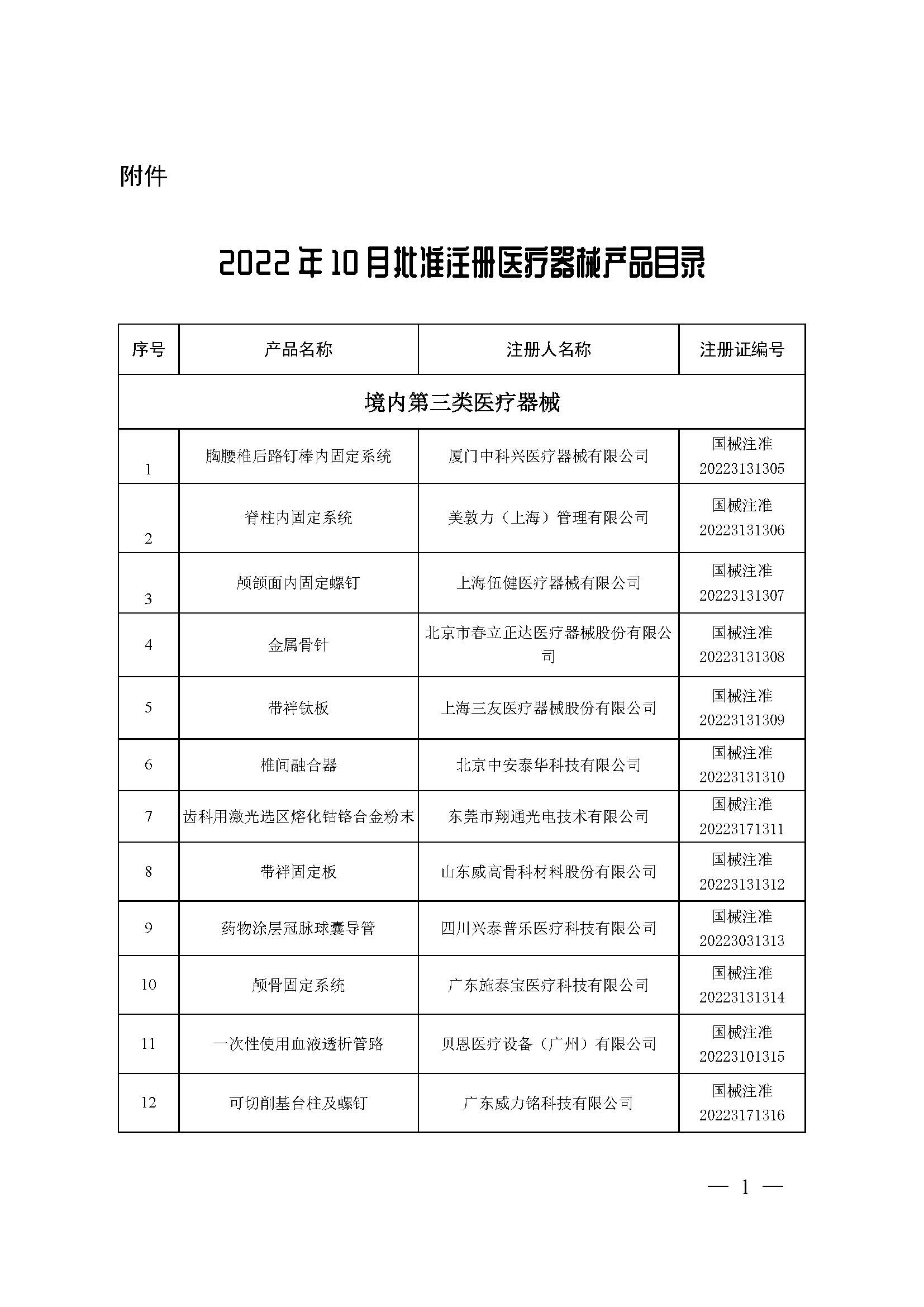 附件:2022年10月批準(zhǔn)注冊(cè)醫(yī)療器械產(chǎn)品目錄
