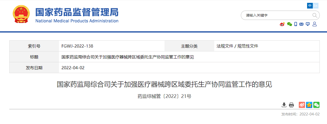 來源:國家藥監(jiān)局綜合司 錄入時(shí)間:2022/4/6 10:23:06 點(diǎn)擊次數(shù):458